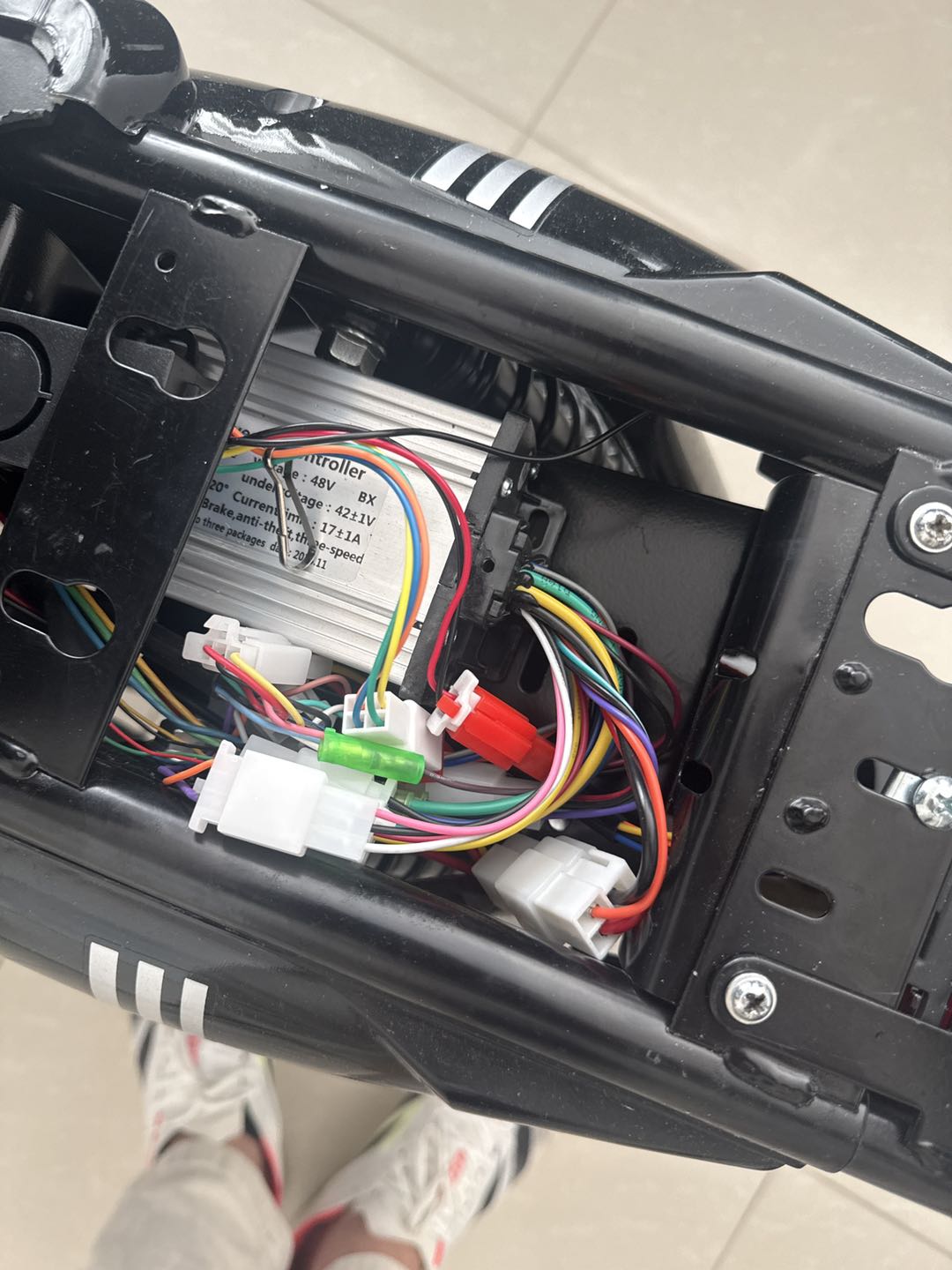 - Acesse o controlador e verifique os cabos ligados à bateria e ao motor.