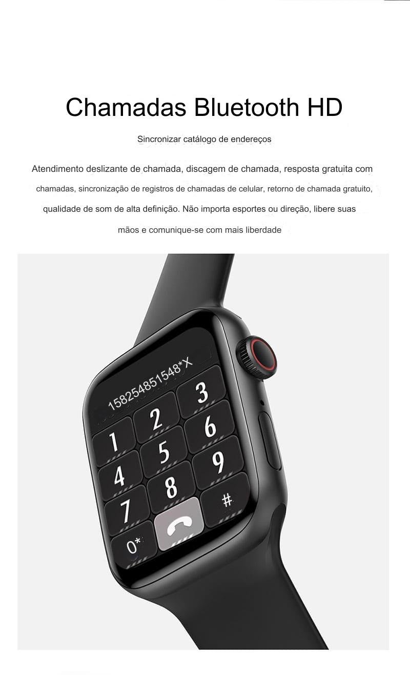 SmartWatch T900 2.0 combina funcionalidades avançadas com design elegante para oferecer uma experiência completa. Com suporte para chamadas Bluetooth e monitoramento da frequência cardíaca, mantém você conectado e informado sobre sua saúde. Este smartwatch permite a troca da correia de 44mm para personalização, oferece música via Bluetooth e apresenta 12 faces diferentes para o mostrador, adaptáveis ao seu estilo e ocasião. Equipado com o chipset MTK2502, garante desempenho fluido e confiável.